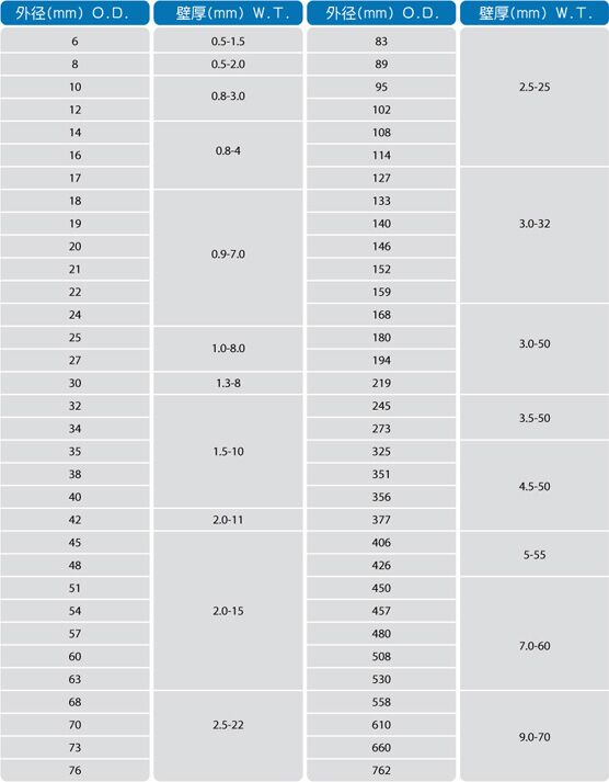 產品尺寸:不銹鋼圓管:外徑6mm-762mm, 壁厚1mm-70mm.